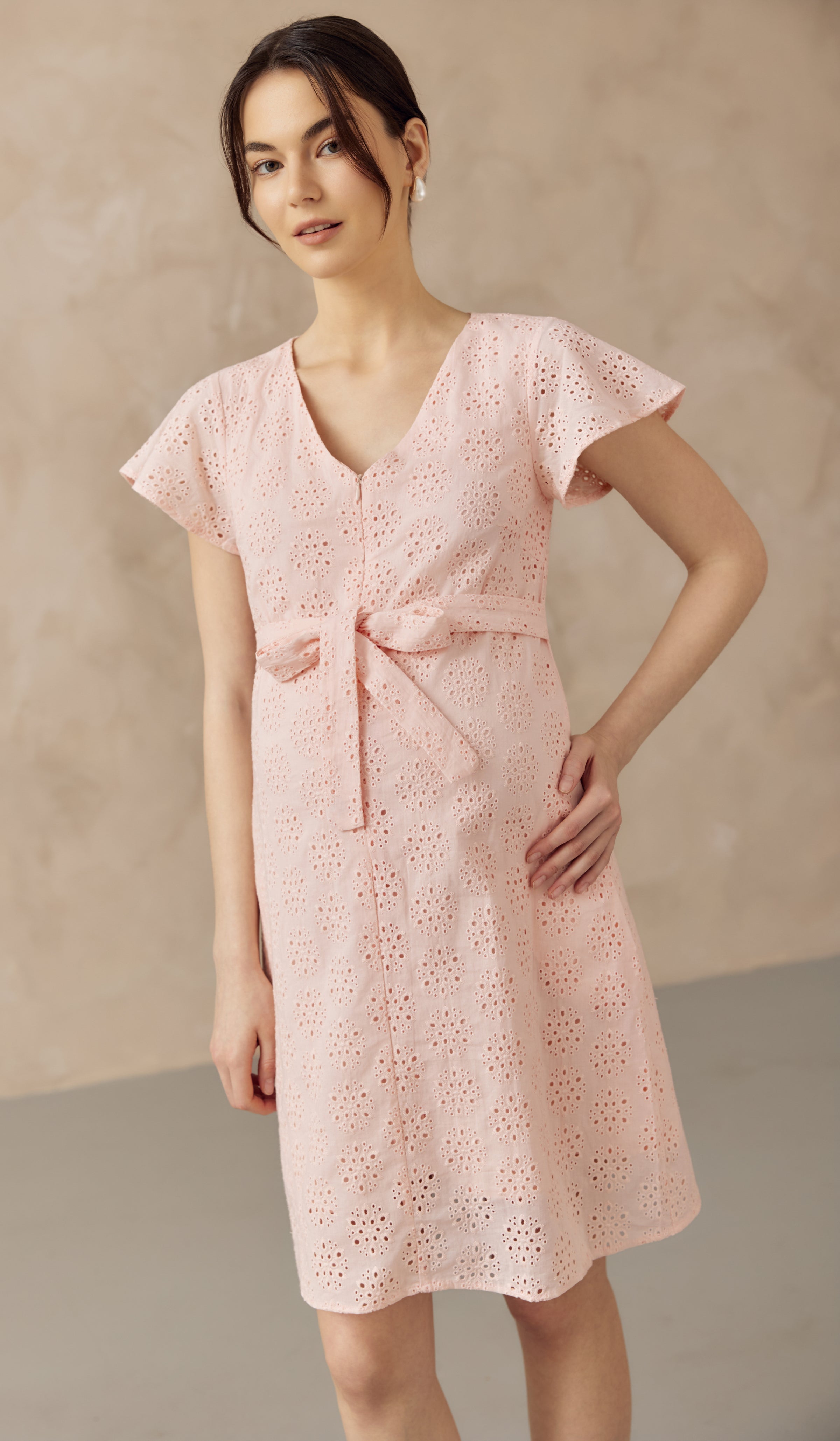 IRINA CROCHET FRONT ZIP NURSING DRESS PINK